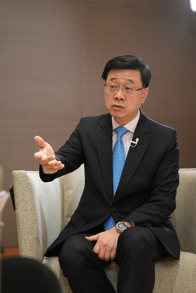 李家超:我成立香港特區政府的“融入國家發展大局督導組”,就是因為“十四五”規劃、粵港澳大灣區建設、“一帶一路”建設等給予了香港無限的發展機遇。在國家以中國式現代化全面推進中華民族偉大復興的過程中,香港可以在很多方面作出貢獻。