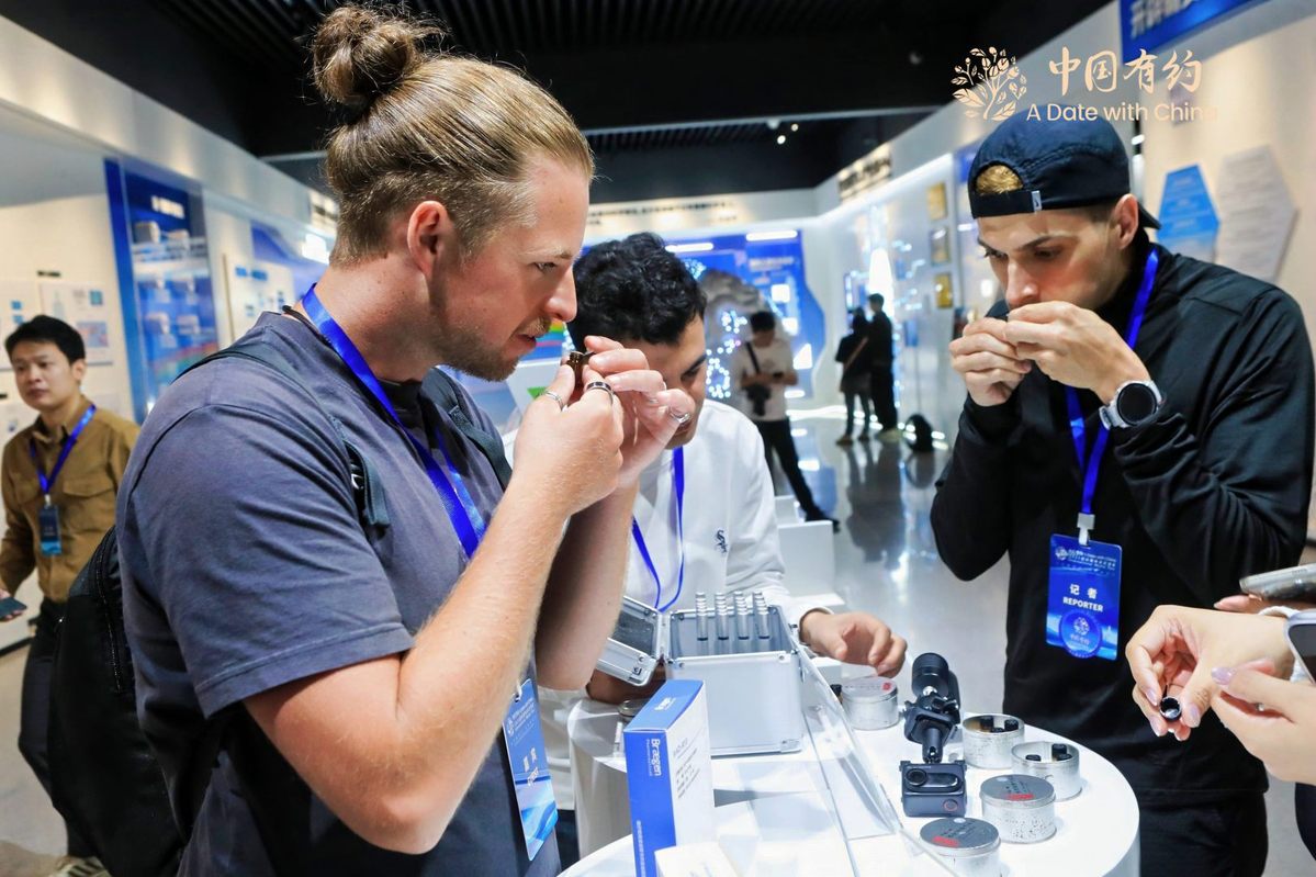 Participants on the 2025 "A date with China" international media tour visit the Industrial Innovation Center for Brain Science and Technology in Shenzhen, Guangdong province, on Nov 26, 2025. The three-day event starting Wednesday offers a firsthand look at the city's advancements in brain science infrastructure, the low-altitude economy, and applied artificial intelligence. [Photo/chinadaily.com.cn]