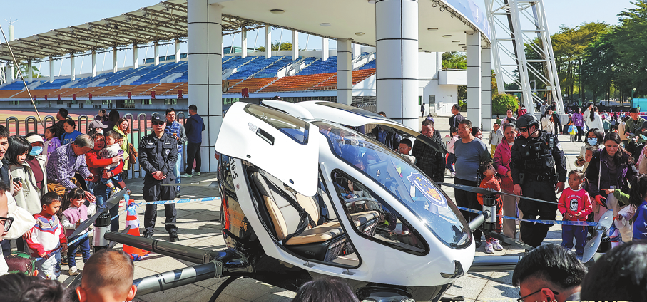 China's first police passenger-carrying unmanned aerial vehicle was commissioned and granted an airworthiness certificate in Guangzhou, capital of South China's Guangdong province, on Jan 10.