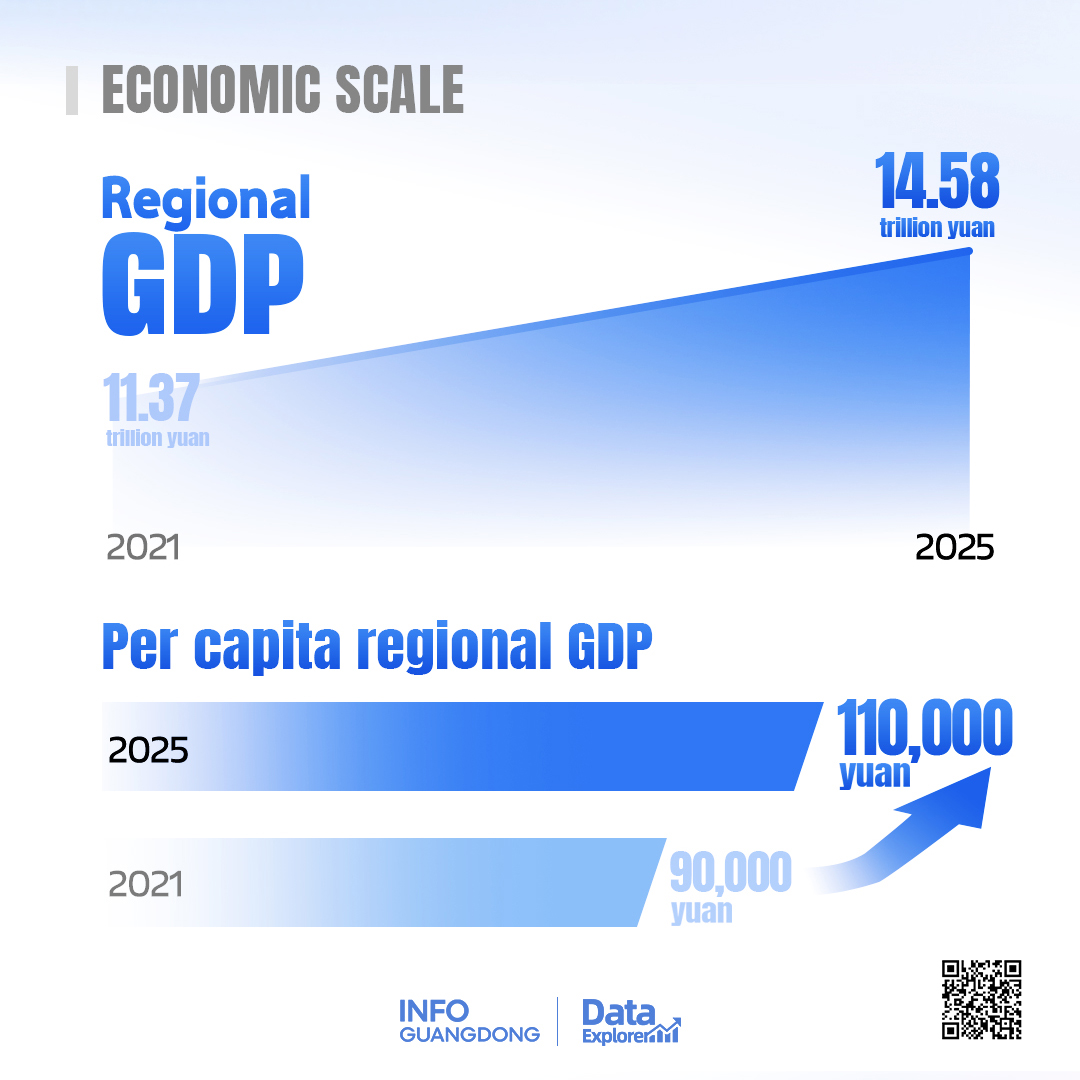2026 marks the start of China's 15th Five-Year Plan, as Guangdong wraps up the 14th Five-Year Plan period with remarkable achievements. The province's regional GDP hit 14.58 trillion yuan, with per capita regional GDP reaching 110,000 yuan.