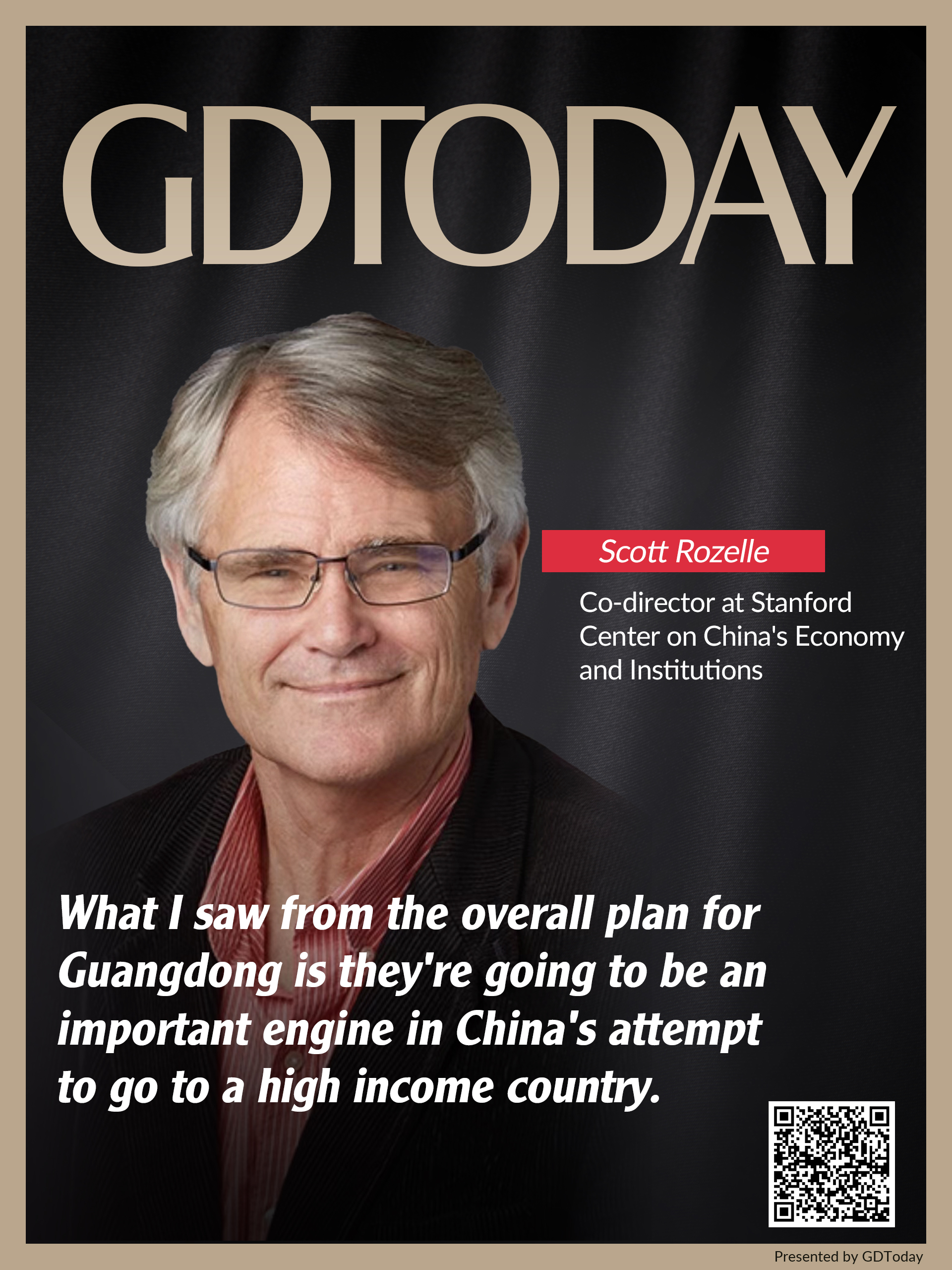 "What I saw from the overall plan (from the 2023 Guangdong Provincial Government Work Report) for Guangdong is that they're going to be a leader in China's goal to become a high-income country. So, integrating rural with urban and trying to raise human capital in rural areas are exactly what you need to do right now," said Scott Rozelle, Co-director of Stanford Center on China's Economy and Institutions in the Freeman Spogli Institute for International Studies and Stanford Institute for Economic Policy Research at Stanford University, in an exclusive interview with GDToday.