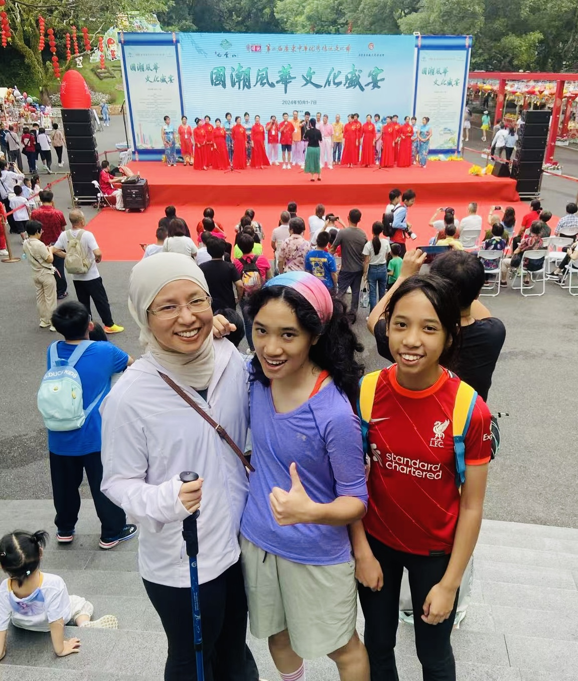 Madame Suraya (1st from the left) with her daughters at Baiyun Mountain in Guangzhou, Guangdong Province. (Photo: Madame Suraya Pauzi)