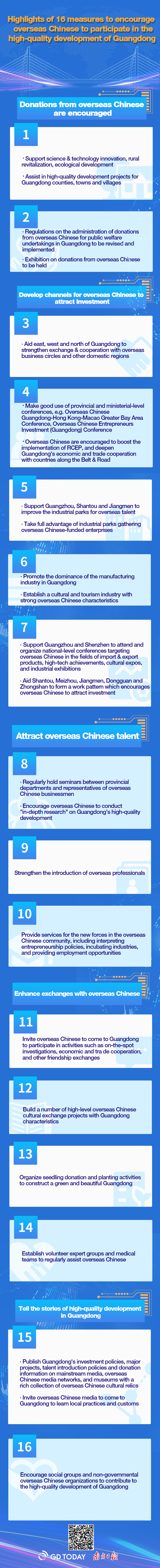 On February 16, Guangdong proposed 16 measures to encourage overseas Chinese people to actively participate in the high-quality development of the province. Here are some highlights of the measures.