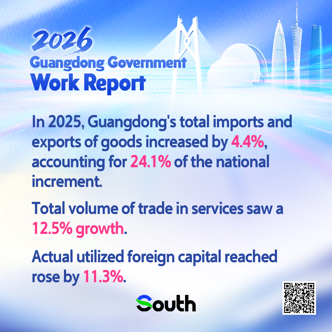 The fifth session of the 14th Guangdong Provincial People's Congress kicked off in Guangzhou on January 26. Guangdong Governor Meng Fanli delivered the Government Work Report at the opening ceremony. Here are some highlights of 2026 Guangdong Government Work Report: