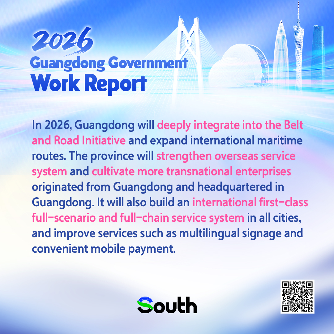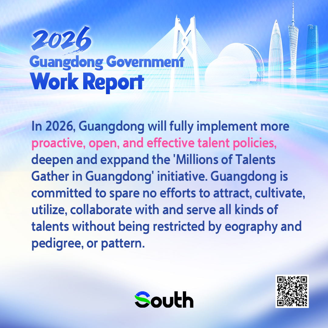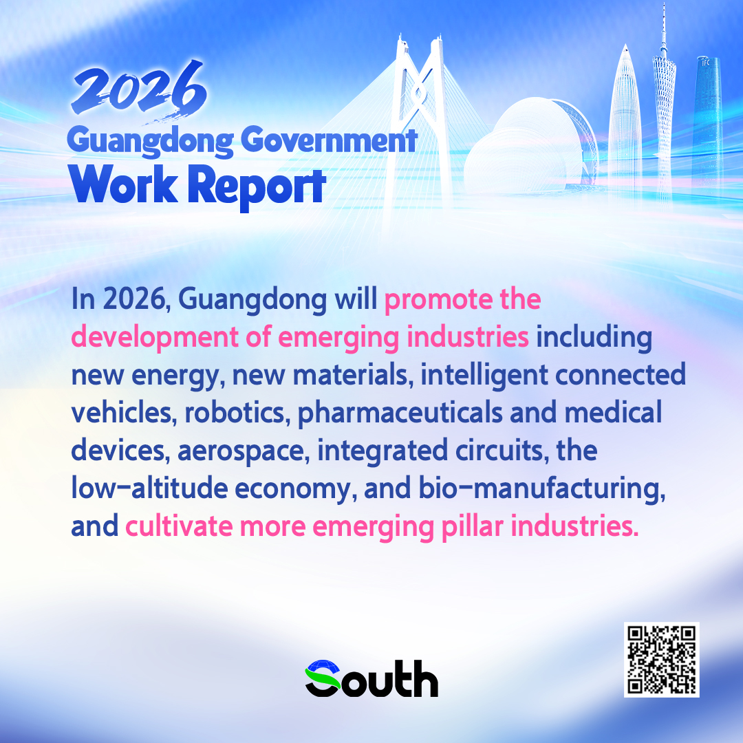 Guangdong, China's largest economic powerhouse, has unveiled its work plan for the whole year of 2026 in the Guangdong Government Work Report delivered by Meng Fanli, Governor of Guangdong Province, on January 26.