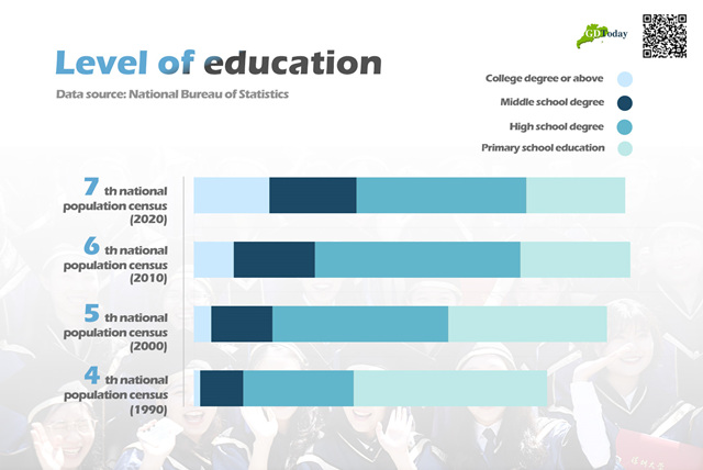 Under the great investment by the Government of Guangdong, the number of people (per 100,000 population) with university (college) degree in Guangdong has surged from 1338 in the 4th national census to 15699 in the 7th national census, a tenfold increase from 1990 to 2020 in accordance with the 7th national census on degree of education in Guangdong.