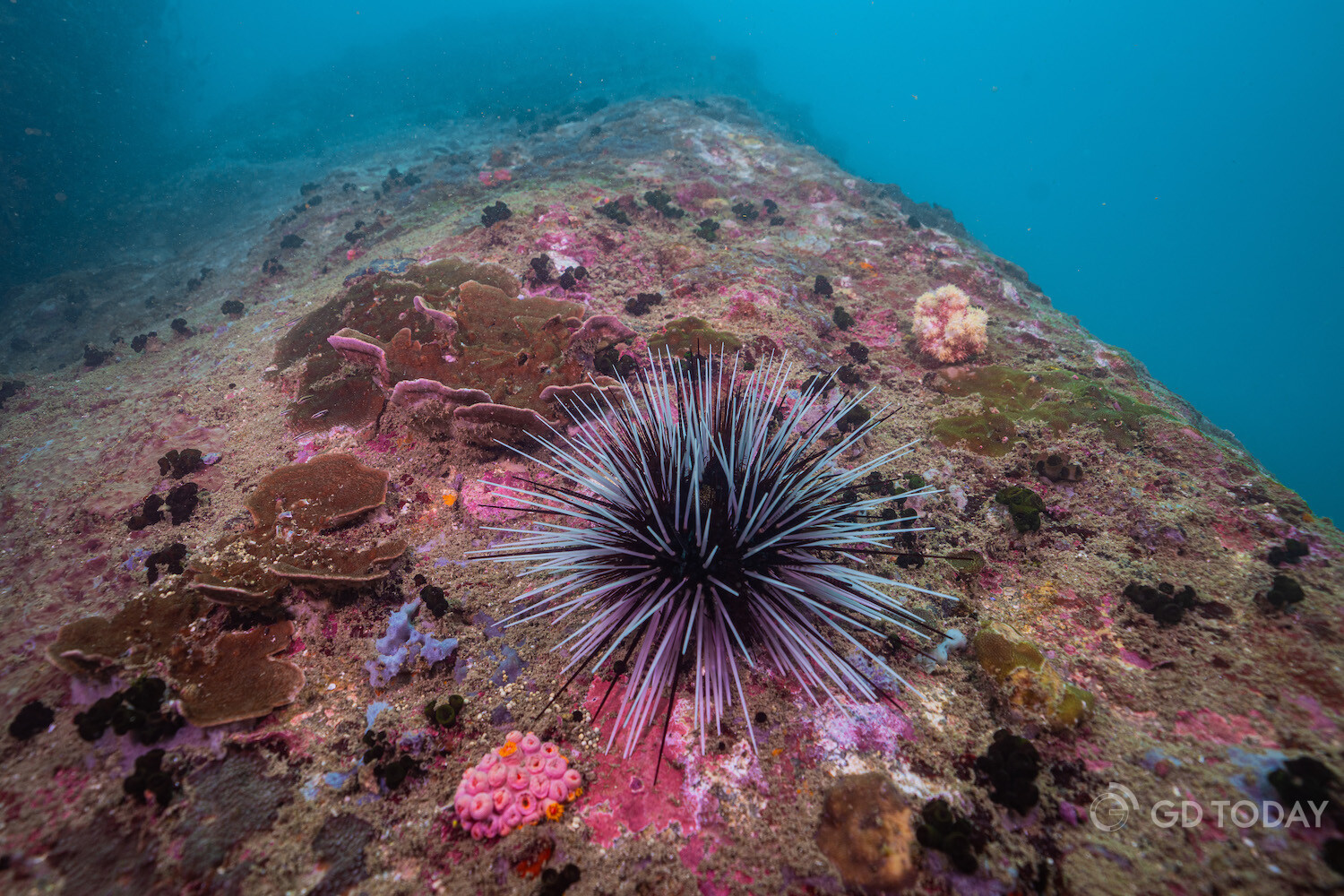 A banded sea urchin in the waters around Wailingding Island in Zhuhai.
