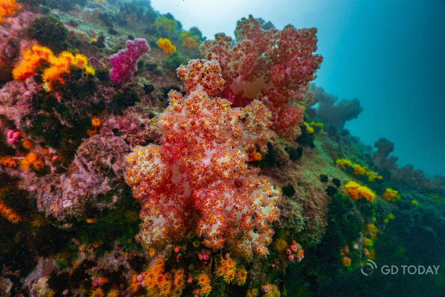 Dendronephthya soft corals are thriving in the favorable water temperature and quality in the waters around Wailingding Island in Zhuhai.