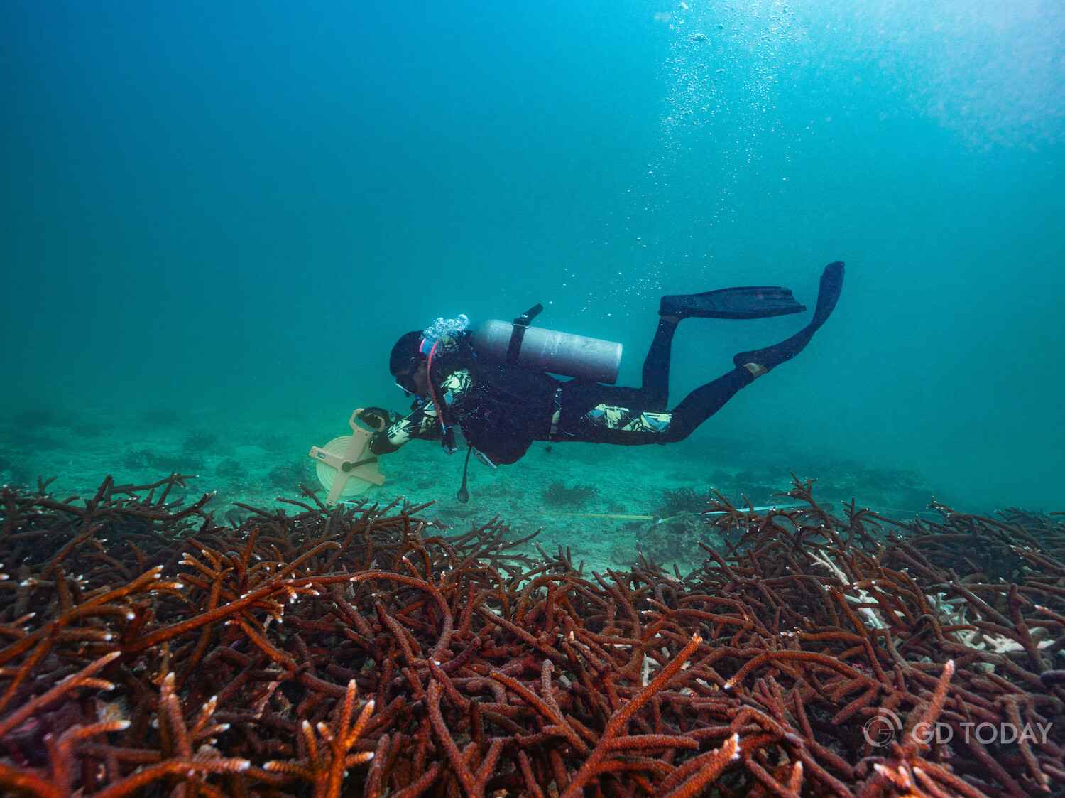 In the waters around Wailingding Island in Zhuhai, they have been measuring and restoring the largest area of staghorn coral in Guangdong.