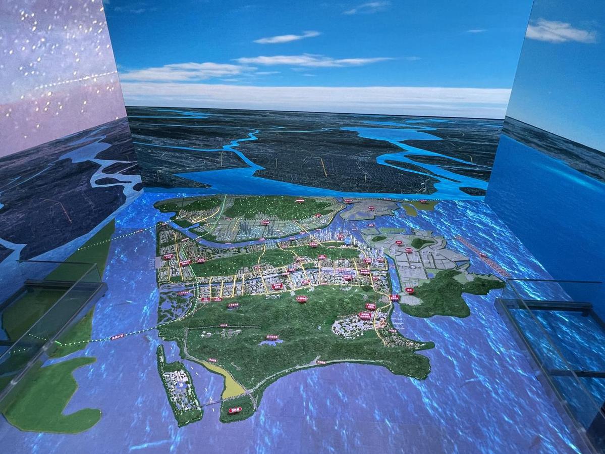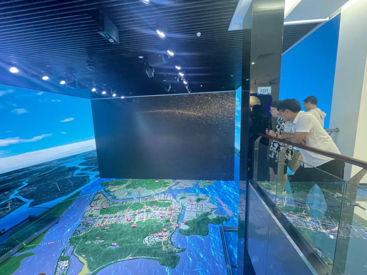 展廳運用國際化創新設計理念,結合現代化高科展示技術,突破傳統平面展示模式,多項互動展項體現了展廳的高智能度與展覽的強交互性。內設VR視覺技術區域、紅外體感互動區域和立體模型,直觀生動地展示了合作區的發展成果及未來規劃,讓采風團收獲了身臨其境的參觀體驗。