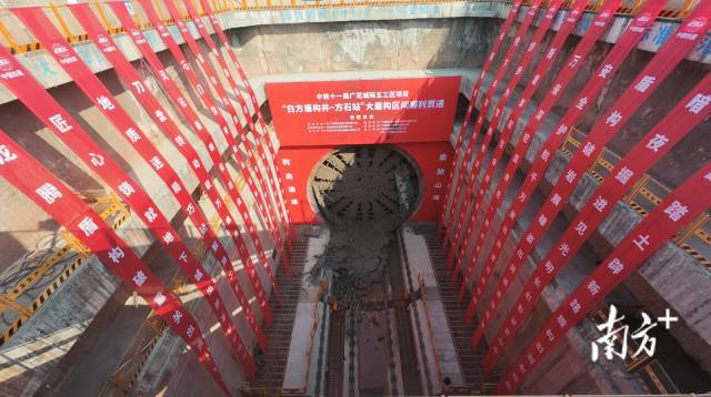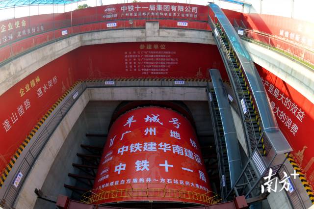 為應對復雜工況,廣州地鐵聯合中鐵建華南建設廣花城際總承包部、中鐵十一局的建設者們經過多次研討,決定采用單洞雙線的施工方案,選用了以廣州命名的“羊城號”大直徑盾構機實施作業。“羊城號”直徑達13.56米,配備智能系統,具有開挖倉高精度壓力平衡控制、大功率泥水環流及刀盤沖刷、超前地質預報等功能,能實現“一次掘進,風險減半”的工程目標。