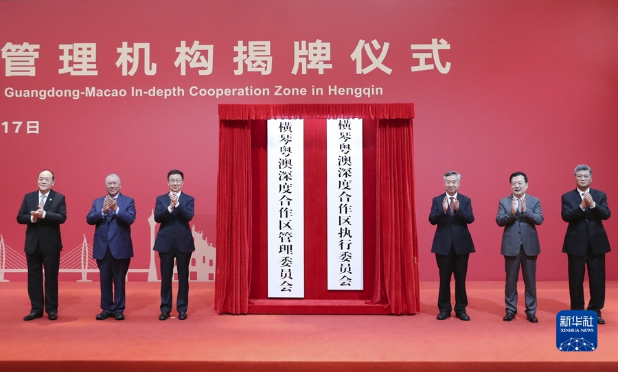 9月17日上午,橫琴粵澳深度合作區(qū)管理機(jī)構(gòu)揭牌儀式在廣東珠海舉行。中共中央政治局常委、國(guó)務(wù)院副總理、粵港澳大灣區(qū)建設(shè)領(lǐng)導(dǎo)小組組長(zhǎng)韓正出席揭牌儀式并講話。新華社記者 丁海濤 攝