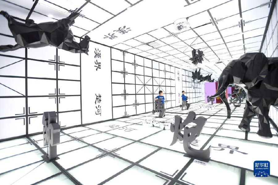 2019年9月21日,小朋友在湖南省長沙市“字在其中”漢字國潮藝術展上參觀。新華社記者 陳澤國 攝