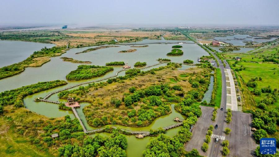 這是5月13日拍攝的山東黃河三角洲國家級自然保護區景色(無人機照片)。新華社記者 郭緒雷 攝
