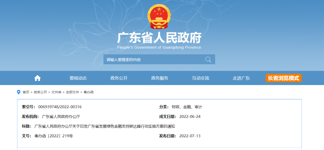 7月13日,廣東省人民政府辦公廳發布通知,正式印發《廣東省發展綠色金融支持碳達峰行動的實施方案》(以下簡稱《方案》),要求各有關單位結合實際認真貫徹執行。執行中遇到的問題,可向省地方金融監管局反映。